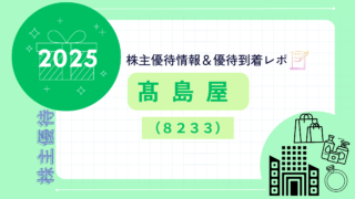 株主優待 【株主優待報告】髙島屋(8233) 髙島屋(8233)の株主優待と配当内容を解説。100株保有で10%割引優待が受けられ、年間10万円利用時の実質利回りは約7%超。長期保有目線での魅力を紹介します。 2026.01.10 株主優待