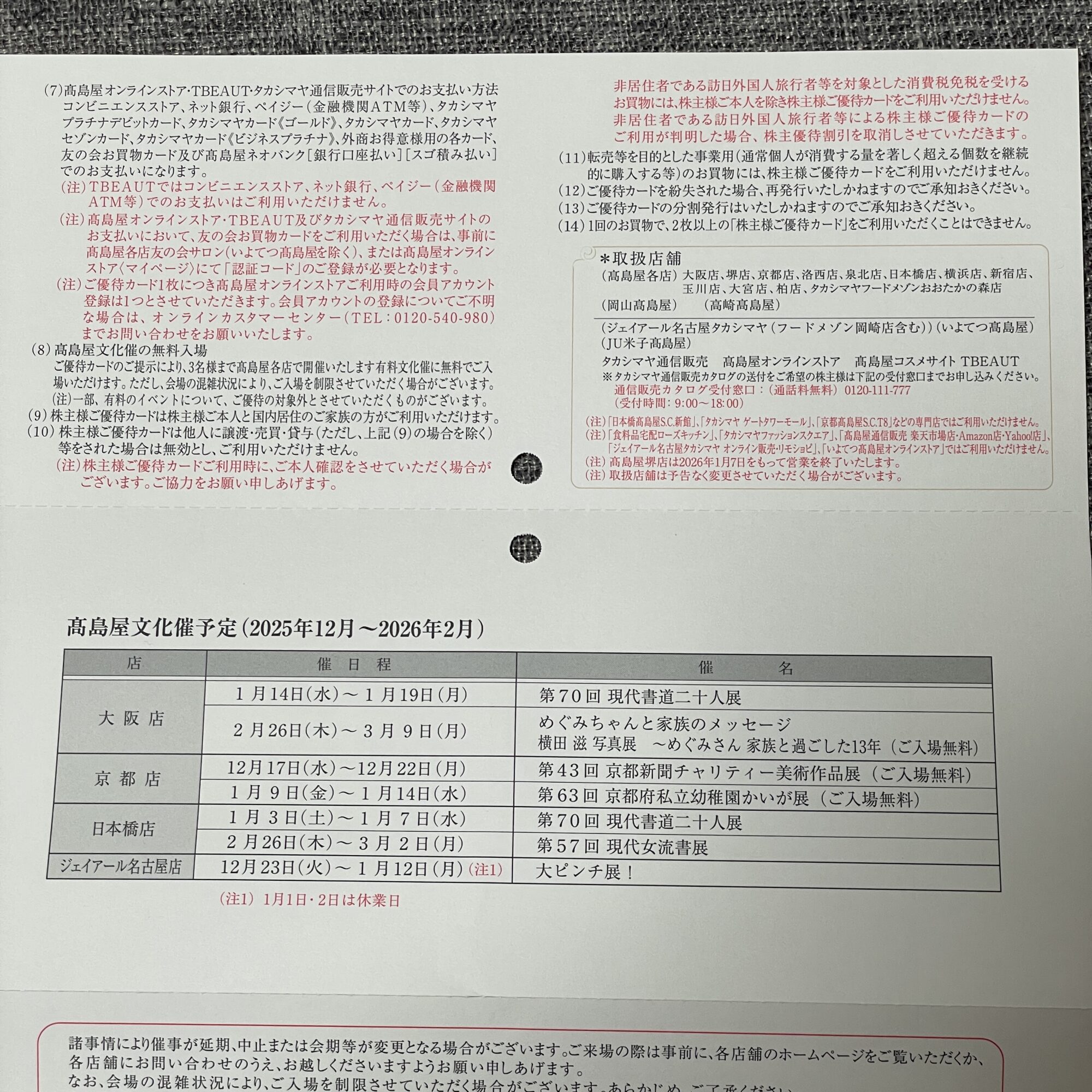 • 株主優待:①高島屋の買い物が10%OFF