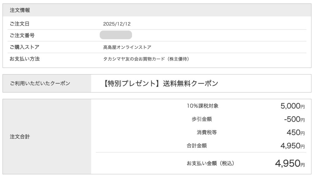※優待カードで購入する場合、髙島屋のポイントは付与されません。